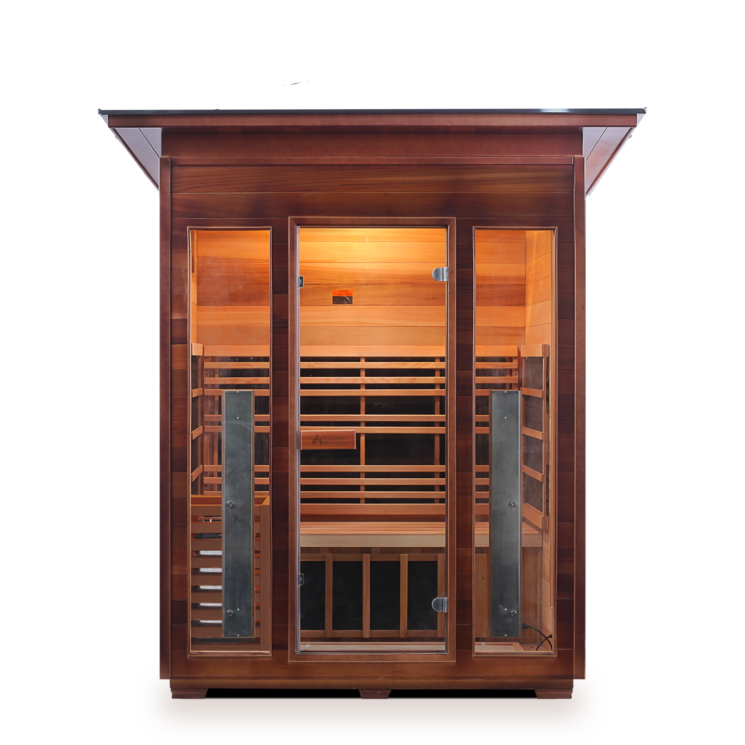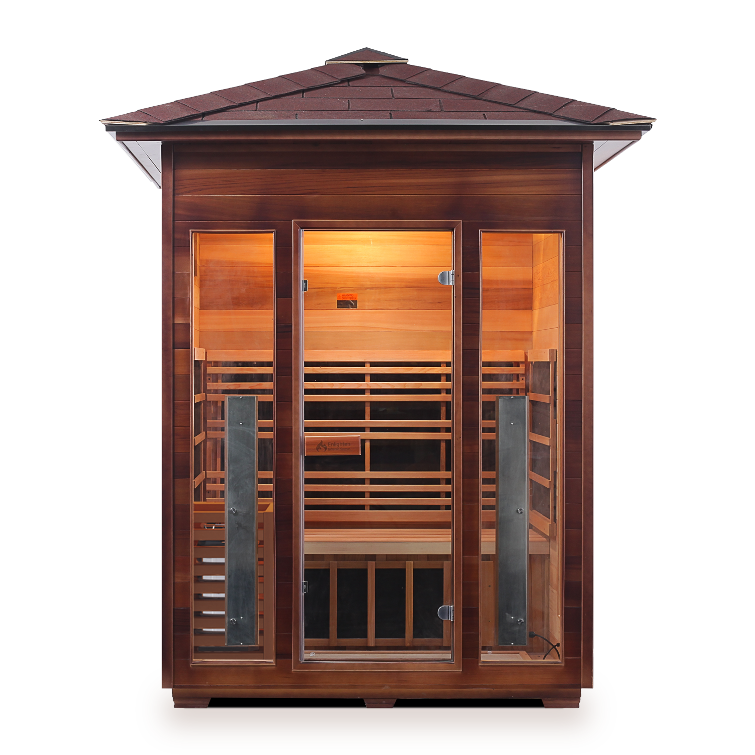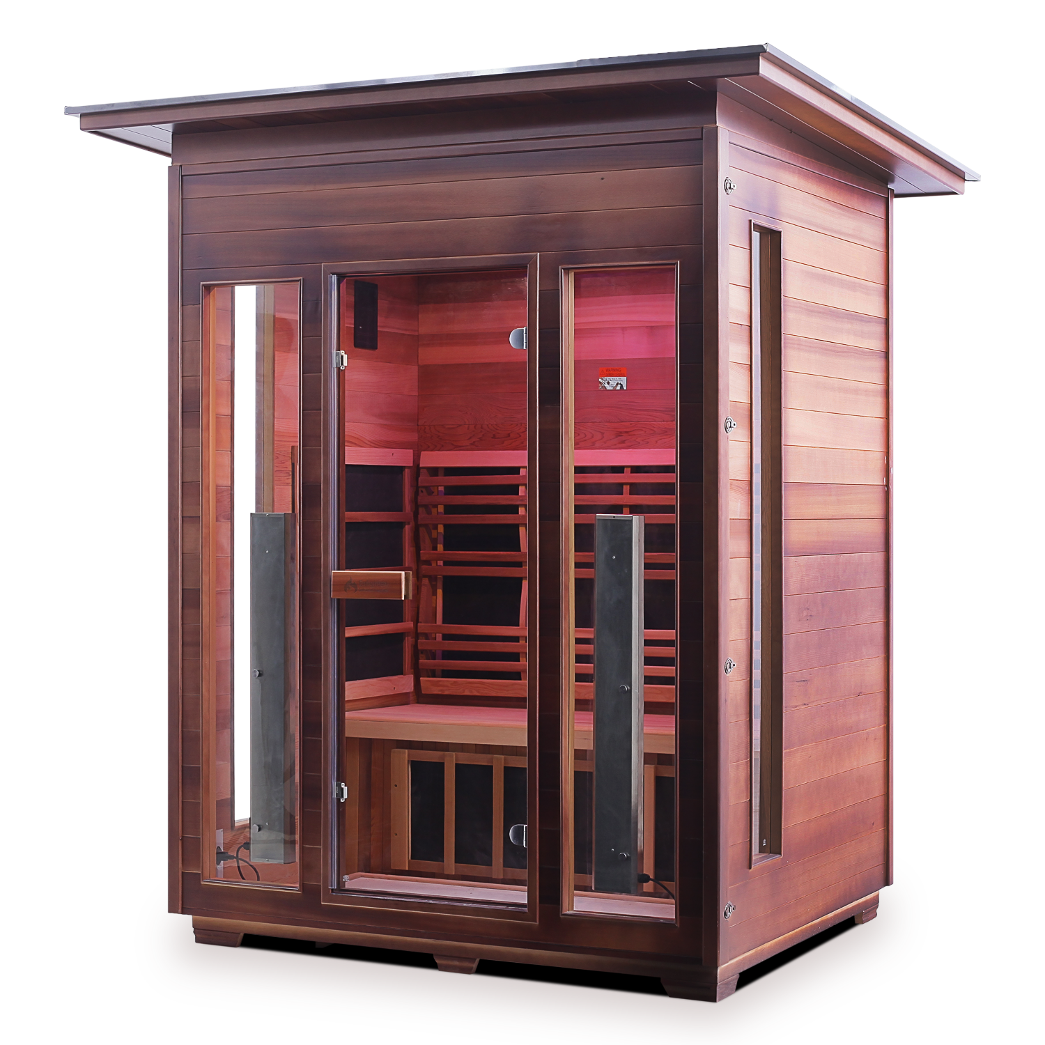 This hybrid outdoor sauna is stylishly designed to make a great impression and to seat three people comfortably. Like all the hybrid variants of our saunas, it features both electric and infrared heaters. Having heaters of both types is superbly beneficial and time-saving. You get to the desired temperature quicker and therefore you can enjoy the effect for longer.
